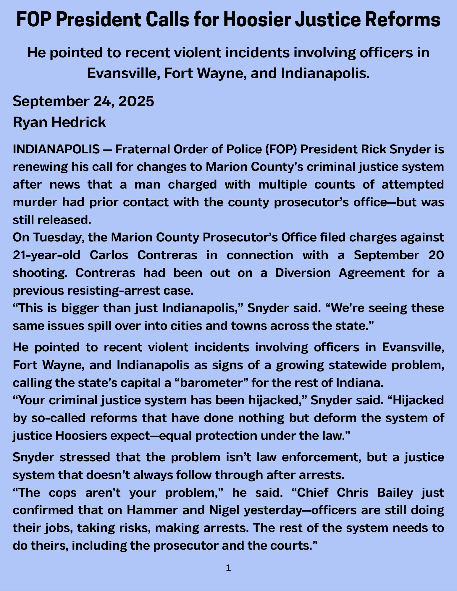 Indy FOP Points to what’s been going on in Indy as Homicides and Juvenile Violence exploded.